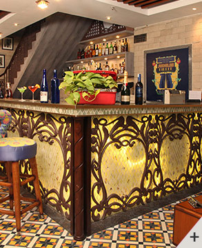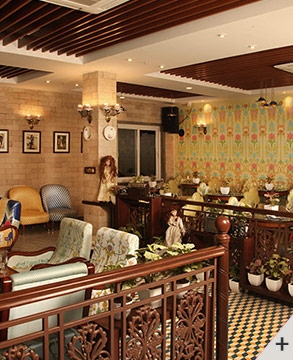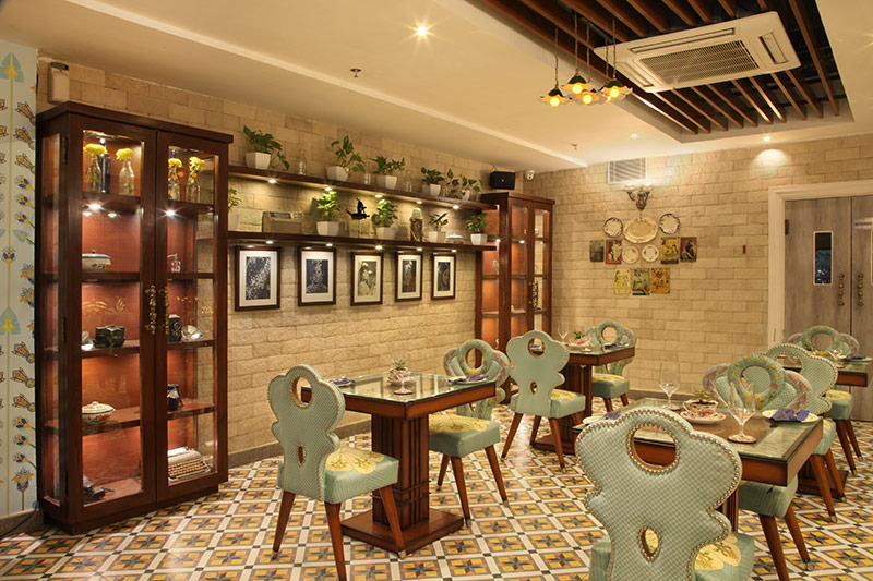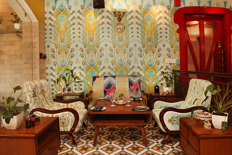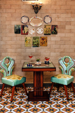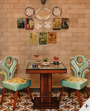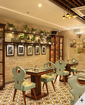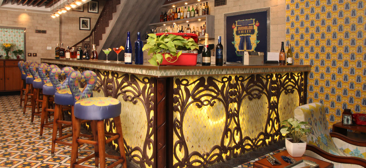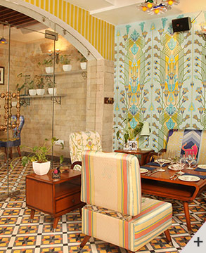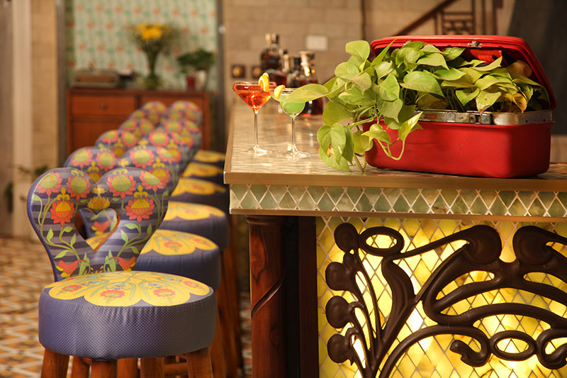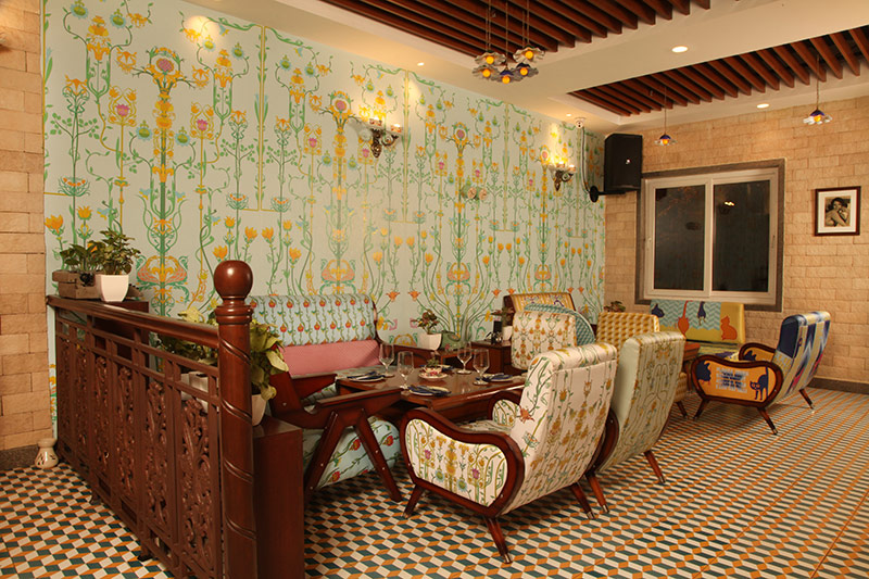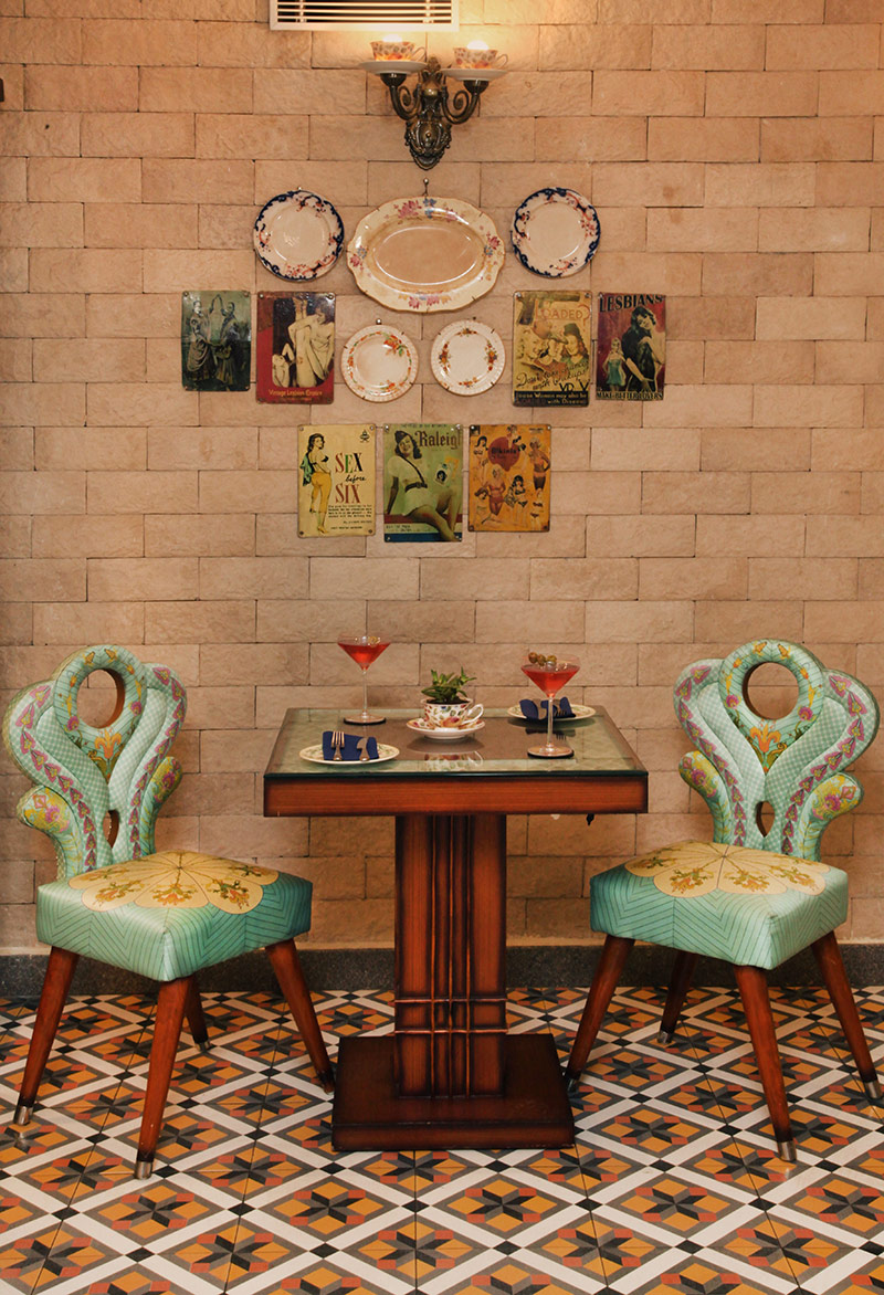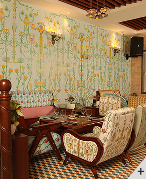 This restaurant finds its muse in the Maximum City and it's Maximum Damsels Bombay in the 60's - Purring to a prowl of a cat out in the wild where delicate Art Noveau was meeting the Industrial Revolution and Bollywood Bloom.