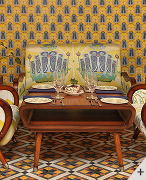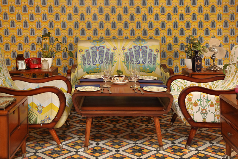 Almost every element in the resto-studio – (furniture, lights, table tops, wall art, curios, objects d'art) – are specifically curated and exclusively designed and are for sale.